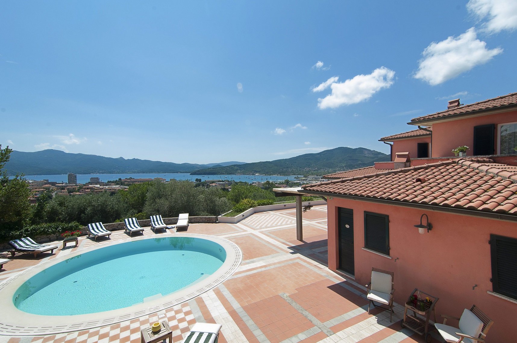 Superb property set on approximately 3,500 square meters of land in a hilly area near the town of Portoferraio, in a panoramic position on the homonymous gulf, in Elba Island, with an amazing view on the sea.