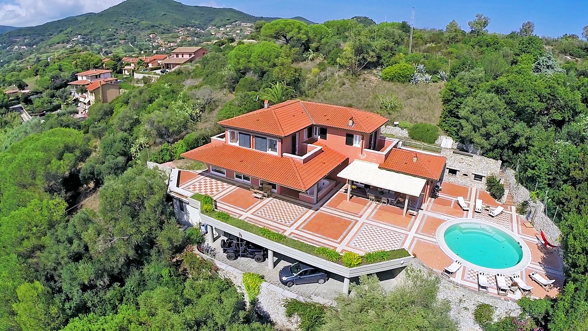 The property is consists of a single villa of about 450 sqm with garden, swimming pool and garage. Recently it was subject to the expansion of available parking spaces and the creation of a usable area as a private heliport.