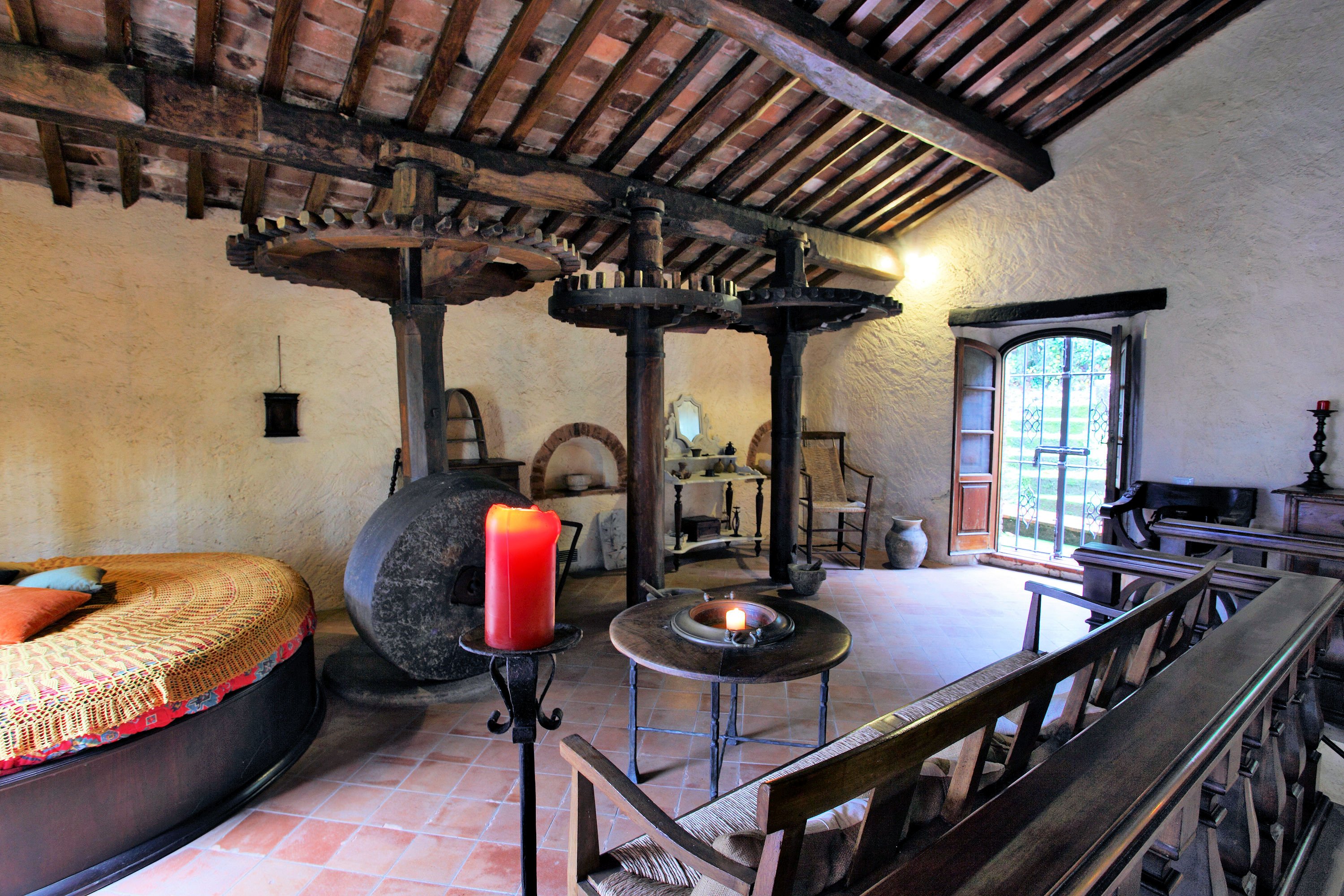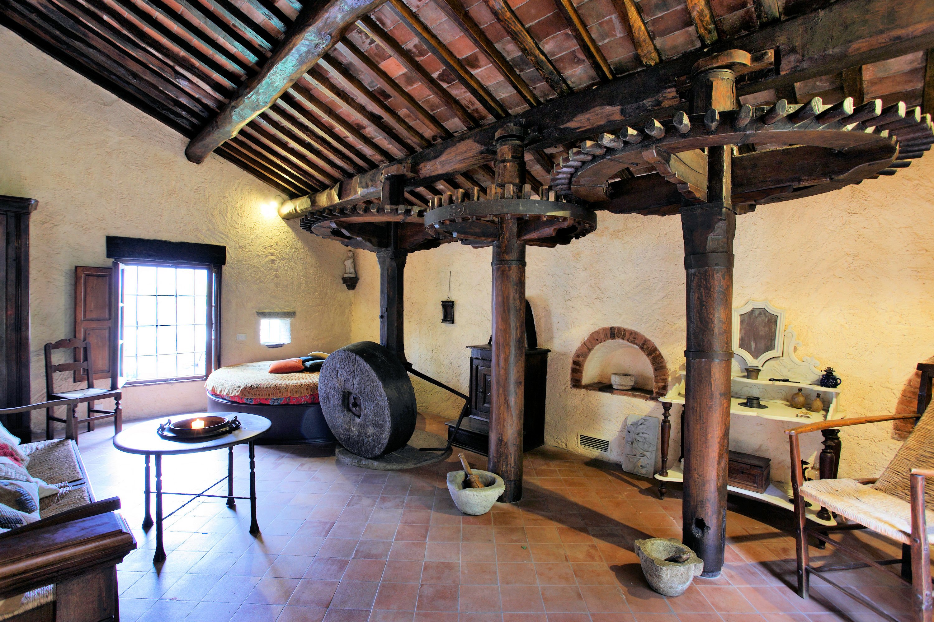 Former mill for olive oil, used for the second pressing, dating back to the 1500s completely restructured under the careful and capable direction of a great Versiliese architect.