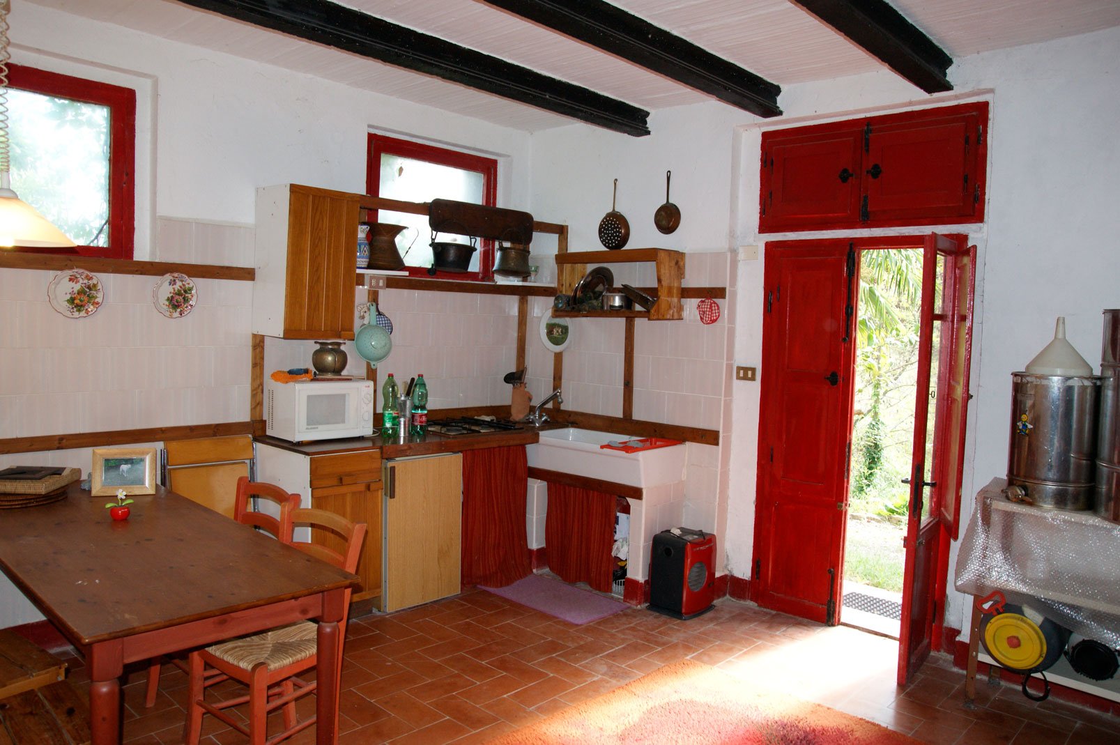 The property includes a country house, 2 storage rooms, which can become bedrooms or small apartments, and 3 hectares of land with garden, olive trees and wood. The main house consists of one apartment on the ground floor with kitchen, one bedroom and a big bathroom for 50 sqm.