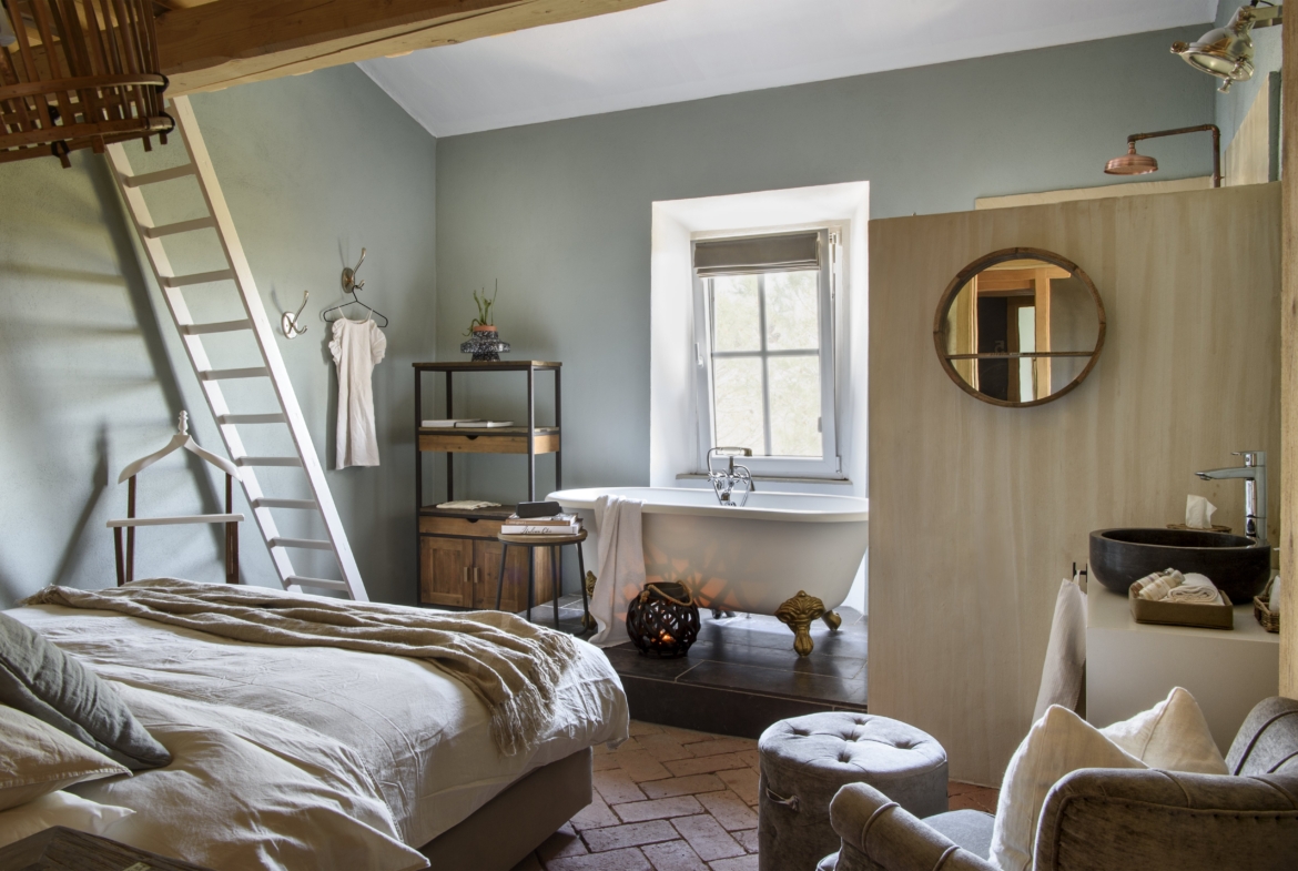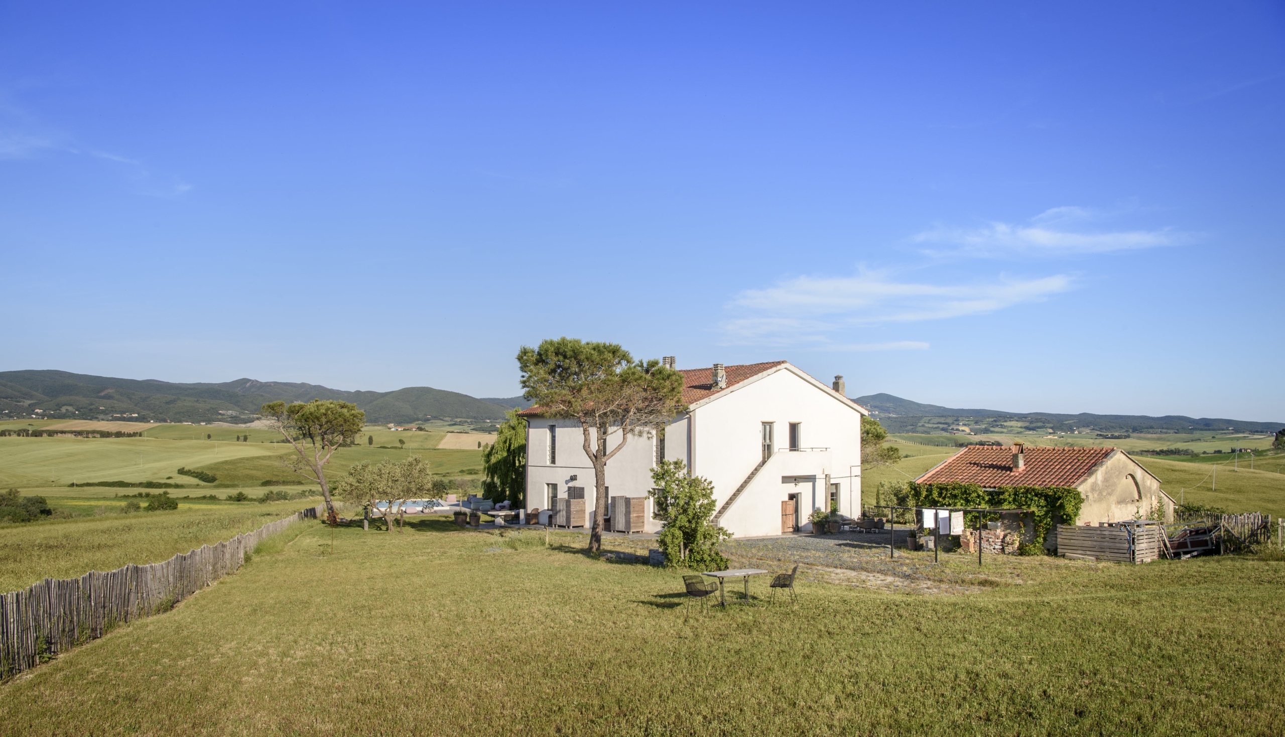 Wonderful stylish property in a private position surrounded by a breathtaking Tuscan landscape 360° . Designed and equipped by a talented furniture designer, it is for sale fully furnished, allowing you to immediately enjoy the luxury Tuscan lifestyle. Each bedroom has a bath and or shower within it.